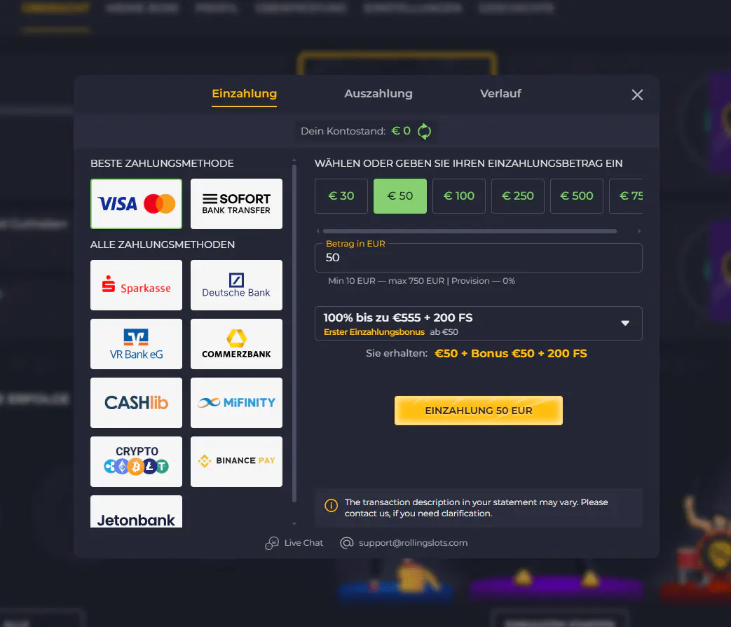 Alle Transaktionen auf Mobile sind verschlüsselt und werden in Echtzeit angezeigt. Verifizierungen (KYC) lassen sich bequem per Smartphone durchführen. Auf RollingSlots Casino Android, Rolling Slots iOS und PWA erfolgt das Banking sicher, schnell und transparent.